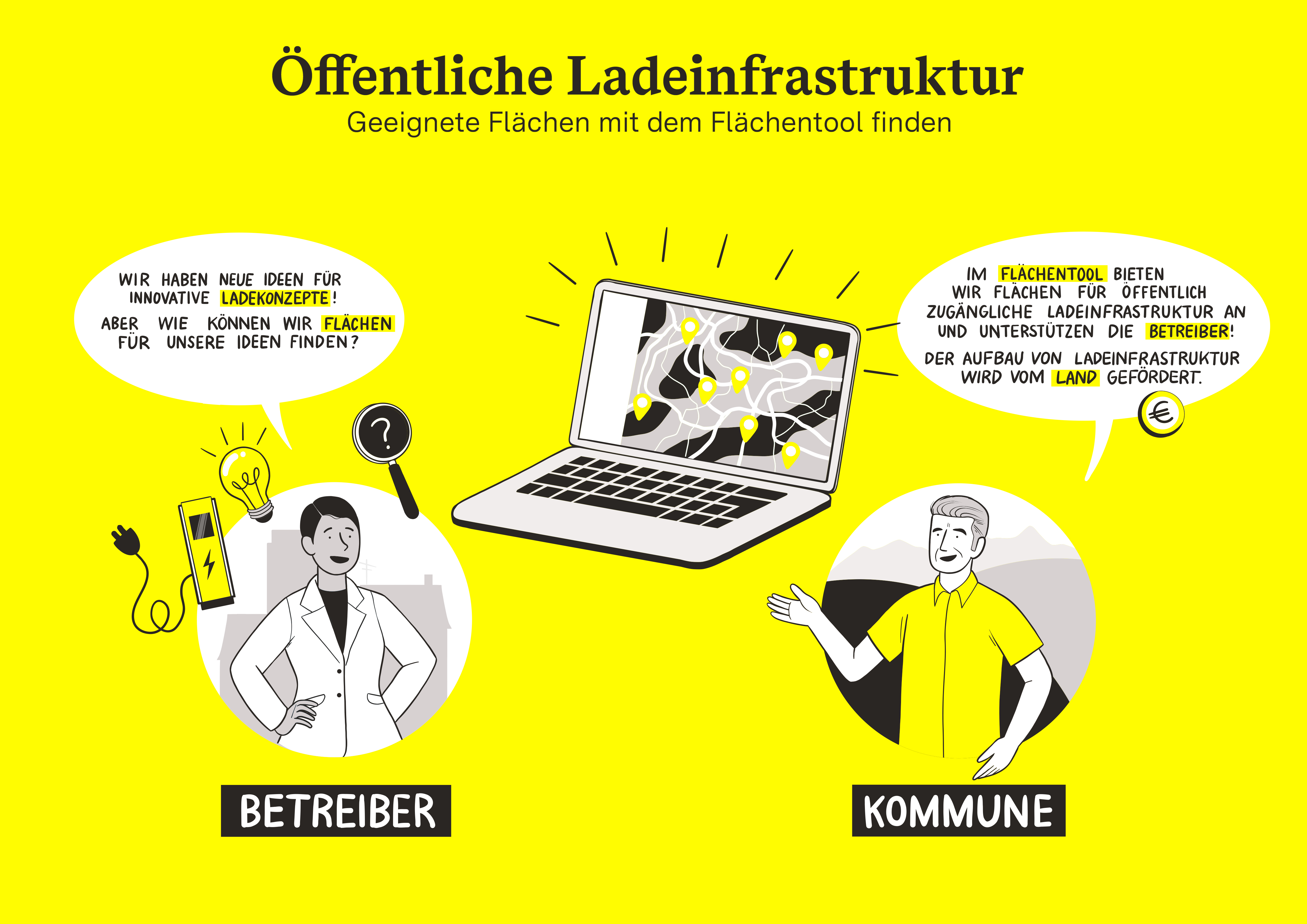 Wir bauen eine flächendeckende und bedarfsgerechte öffentlich zugängliche Ladeinfrastruktur weiter auf. Dafür werden ausreichend Flächen bereitgestellt. Elektromobilitätskonzepte und Förderprogramme kommen zum Einsatz.